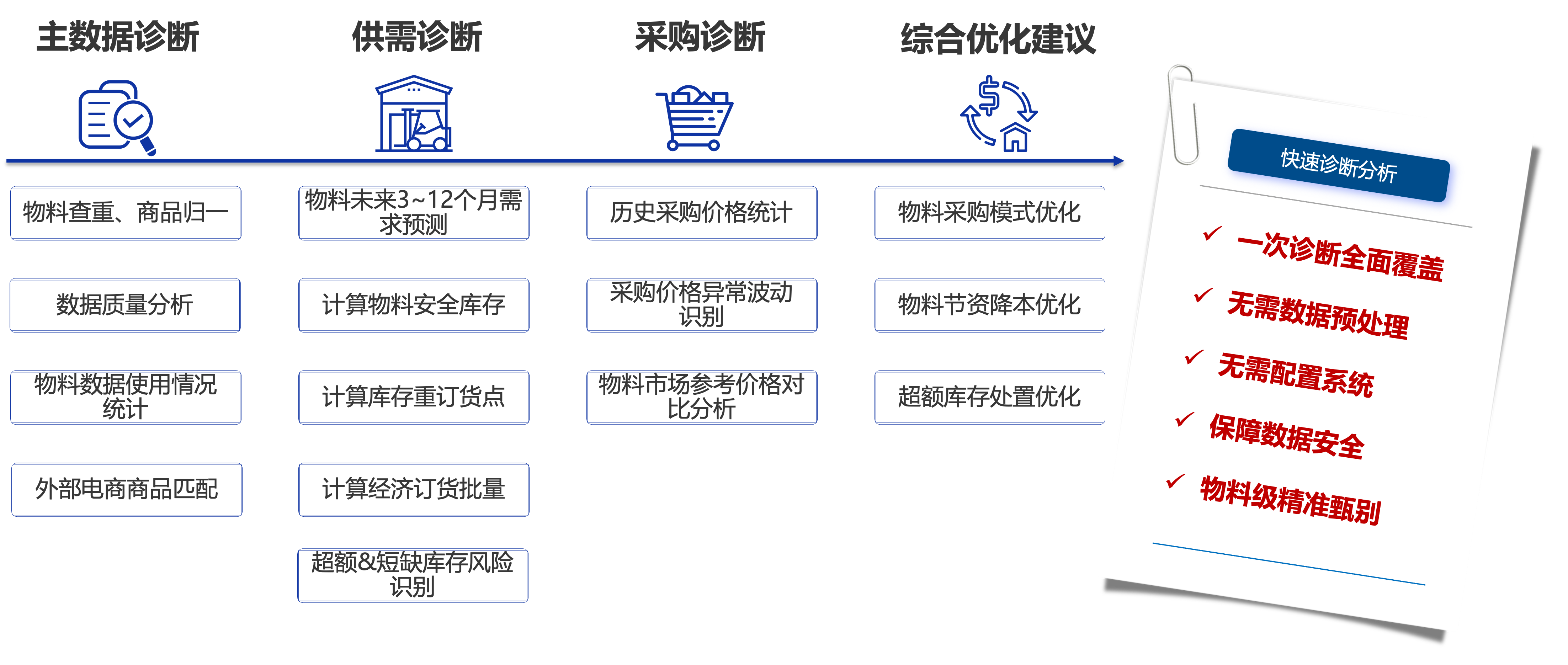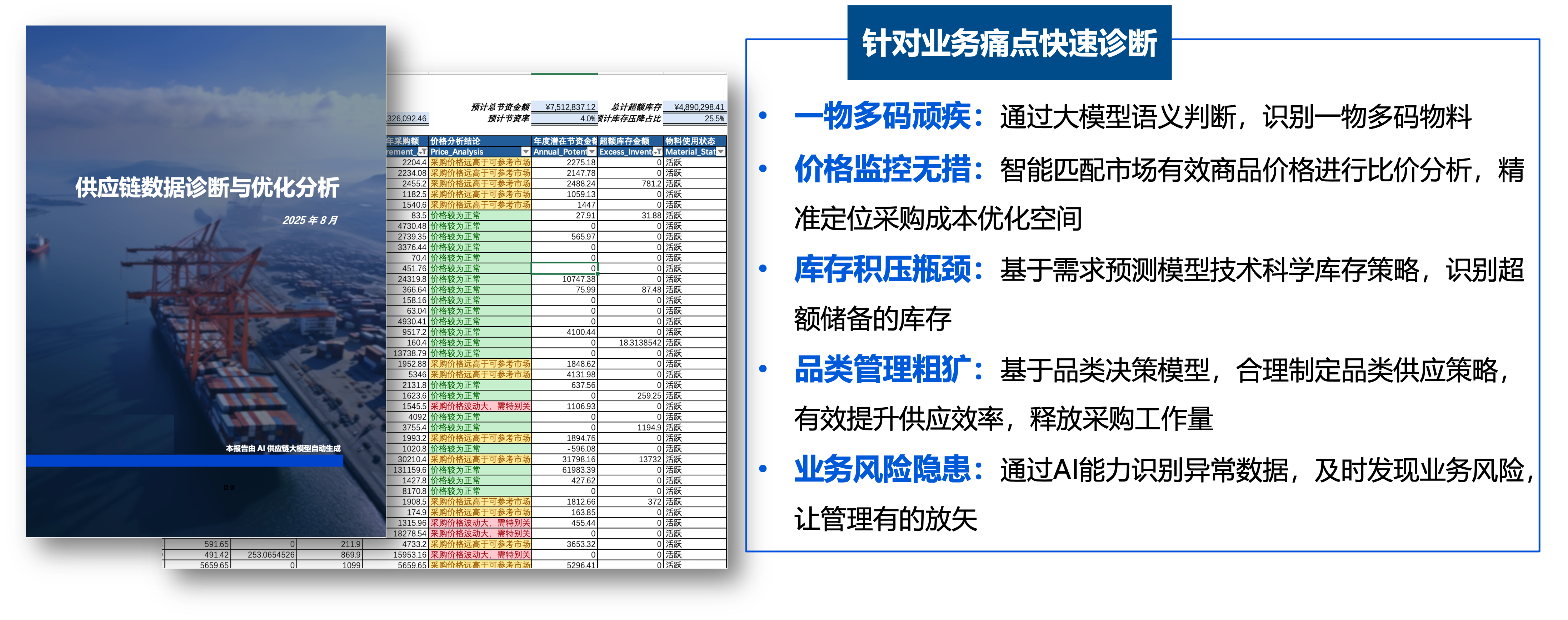 基于行业数据、业务模型以及客户历史数据,为客户提供供应链运营管理日常建议为日常决策提供数据支持。